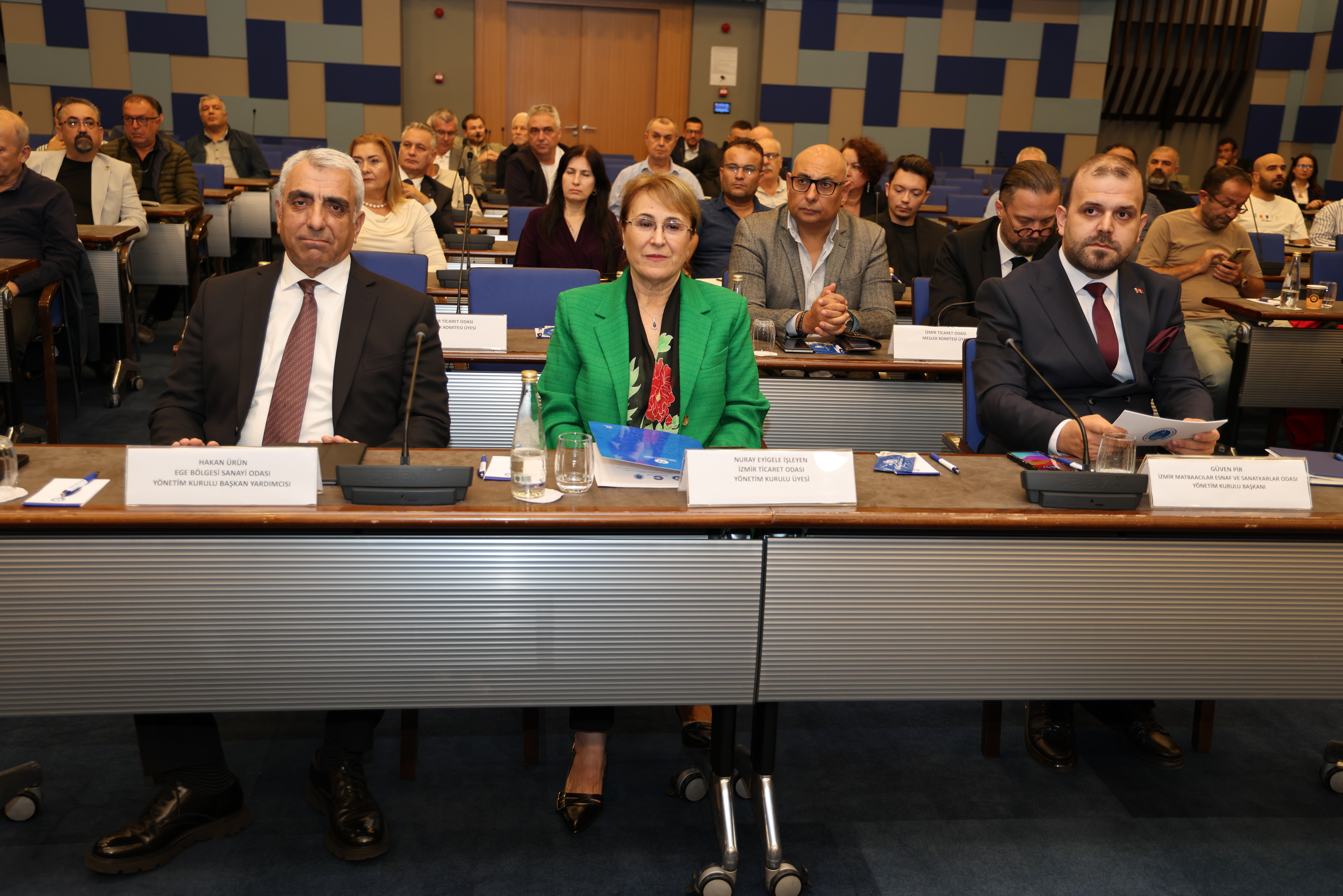 Ege Bölgesi Sanayi Odası, İzmir Ticaret Odası ve İzmir Matbaacılar Esnaf ve Sanatkarlar Odası iş birliğiyle düzenlenen “Son Ekonomik Gelişmeler Işığında Kağıt, Etiket, Ambalaj ve Matbaacılık Sektörünün Geleceği” Toplantısı'na, EBSO Yönetim Kurulu Başkan Yardımcısı Hakan Ürün katılarak, açılış konuşması gerçekleştirdi. Toplantıda, EBSO Meclis üyeleri de yer aldı.