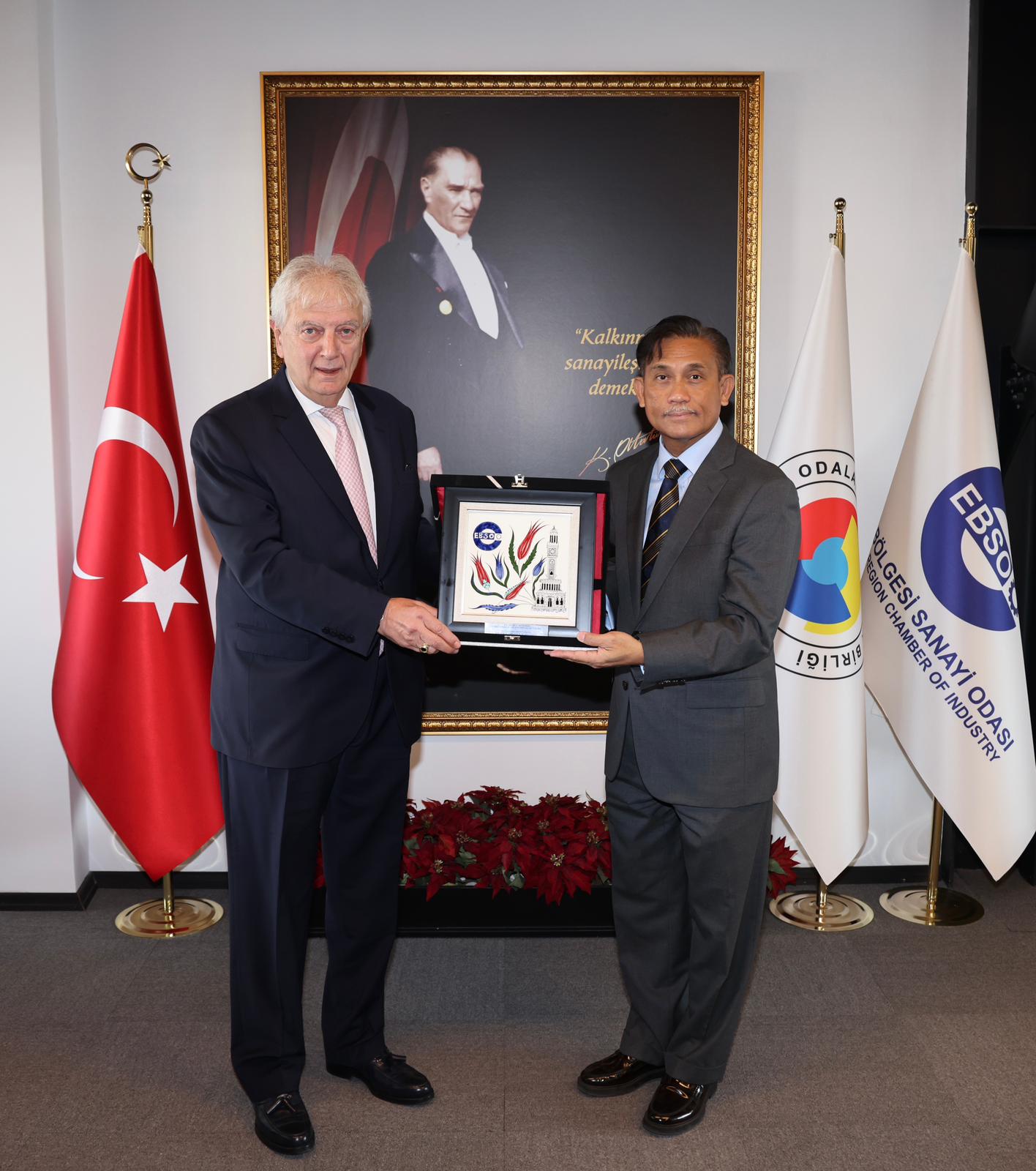 Filipinler’in Ankara Büyükelçisi Henry S. Bensurto, Ege Bölgesi Sanayi Odası (EBSO) Yönetim Kurulu Başkanı ve Henry S. Bensurtor’ı ziyaret etti. Ziyarette, Filipinler ile İzmir arasındaki kültürel, ticari ve ekonomik ilişkilerin geliştirilmesi ile sektörel iş birliklerine yönelik değerlendirmeler yapıldı. Toplantıda ayrıca, 7-15 Aralık 2025 tarihlerinde Filipinler’de gerçekleştirilecek olan “Tara Na sa Pinas!” programı hakkında bilgi paylaşıldı. EBSO Yönetim Kurulu Başkanı Ender Yorgancılar, “İzmir olarak üzerimize düşen bir görev varsa her zaman hazırız. Projeyle ilgili bir heyet oluşturulabilir. İzmir ve Filipinler arasında bir turizm köprüsü kurulması için önemli bir proje.” dedi. Ziyarete, EBSO Yönetim Kurulu Üyesi Hüseyin Turhan da eşlik etti.