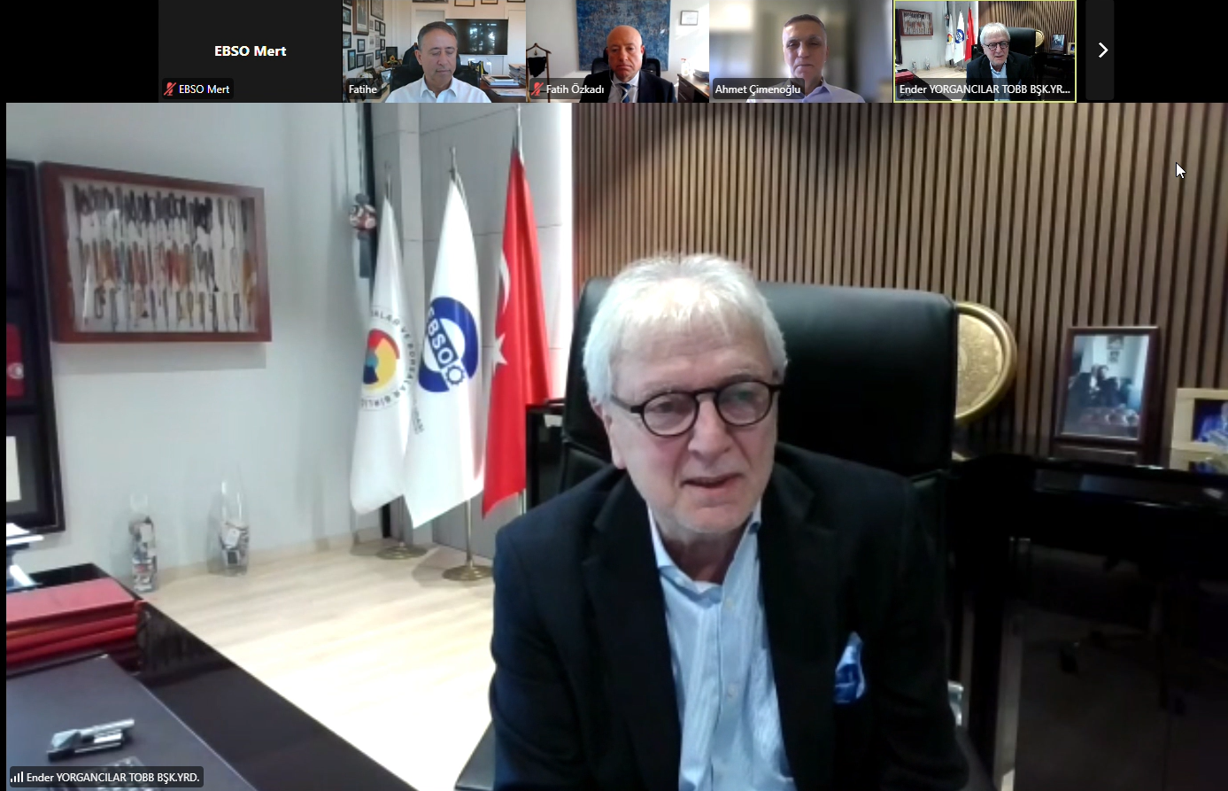TOBB Türkiye Dayanıklı Tüketim Malları Meclisi, EBSO Yönetim Kurulu Başkanı ve TOBB Başkan Yardımcısı Ender Yorgancılar'ın katılımıyla çevrimiçi olarak gerçekleştirildi. Toplantıda sektör konuları ve çözüm önerilerinin yanında güncel ve ekonomik değerlendirmelerde bulunuldu.