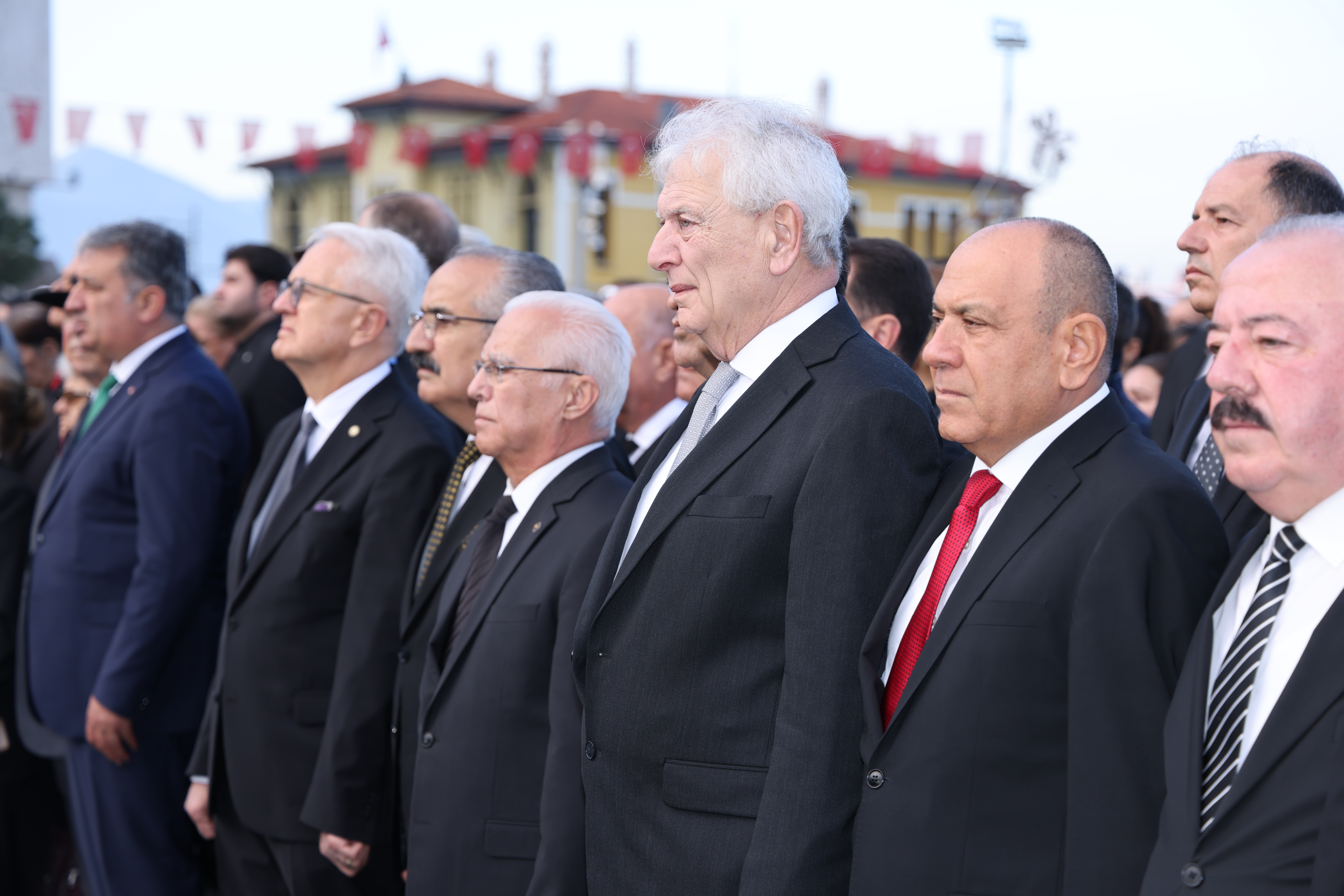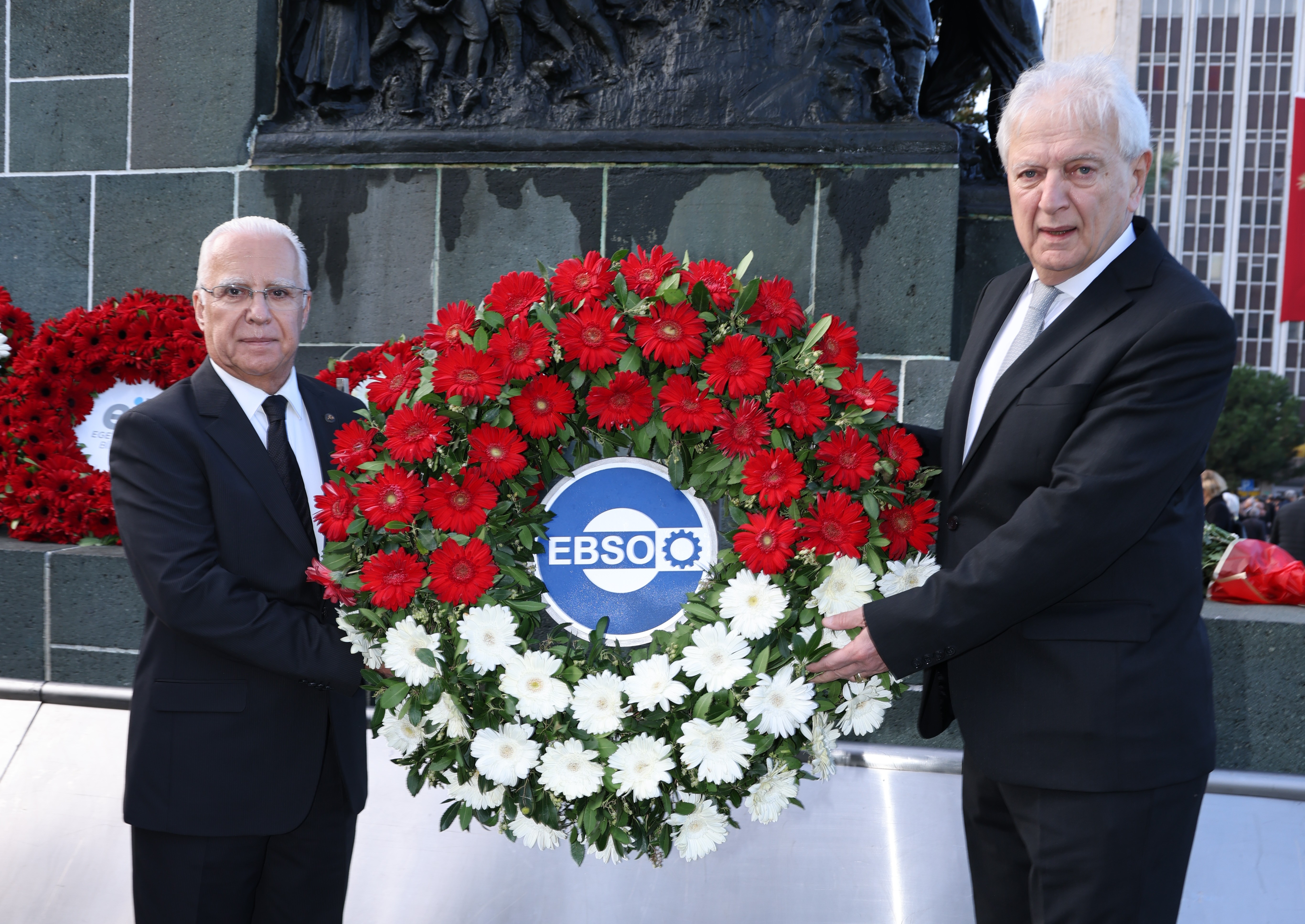 Cumhuriyetimizin kurucusu, Ulu Önder Gazi Mustafa Kemal Atatürk’ün aramızdan ayrılışının 87’nci yıl dönümü dolayısıyla, T.C. İzmir Valiliği tarafından düzenlenen anma ve çelenk sunma törenine, Ege Bölgesi Sanayi Odası (EBSO) Meclis Başkanı H. İbrahim Gökçüoğlu ve EBSO Yönetim Kurulu Başkanı Ender Yorgancılar katılarak, Atatürk Anıtı’na çelenk sundu.